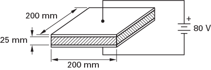 The dielectric material in the capacitor shown has a permittivity of 24ϵ 0 (that is, the permittivity is 24 times that of a vacuum).