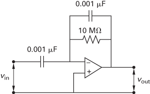 Disregarding the effects of phase change on the output voltage, the voltage gain at an input frequency of 100 Hz is most nearly